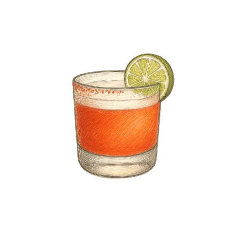 Mezcal or Tequila <> Lime Juice <> Blood Orange Syrup <> Fresca <> Tajin